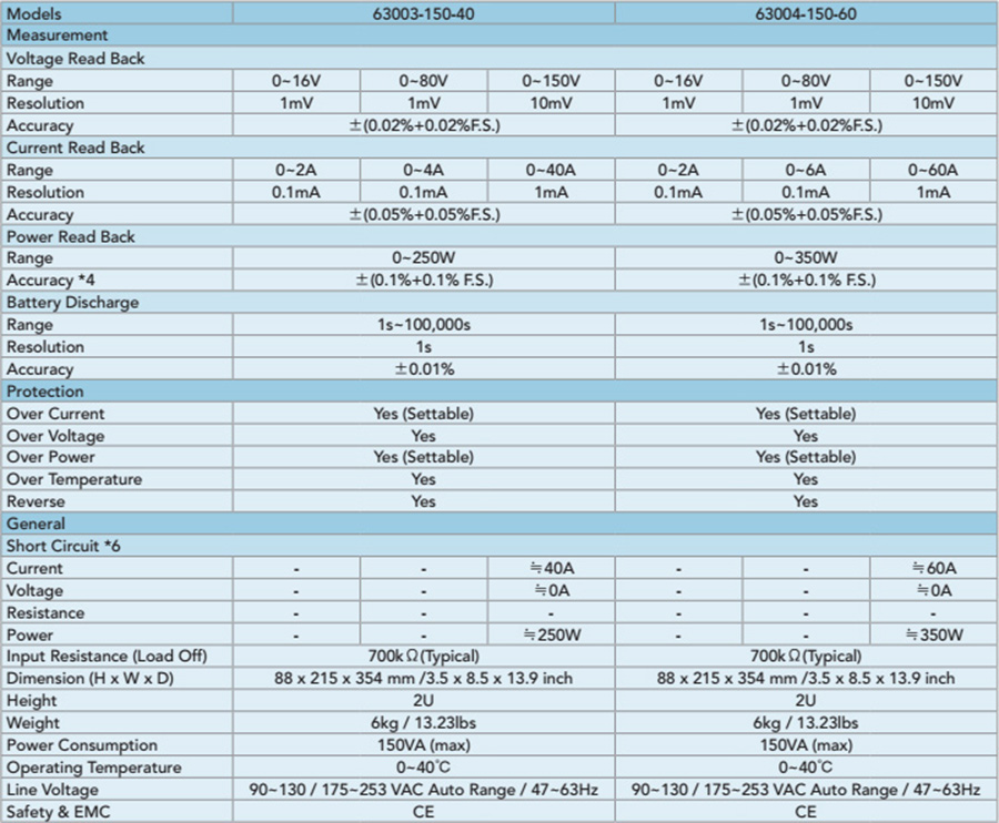 63000系列为150V与600V,二种电压规格,功率范围为250W与350W '単一台的最大电流可达60A。桌上型的电子负戴体积小、重量轻 ' 方便移动,适合研发与验证草位使用。