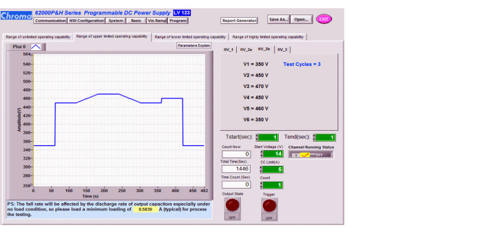 62000H系列电源供应器提供3U高15KW的高功率密度,具有低输出噪音及涟波、绝佳的市电扰动调节、负载调节与快速暂态回应。其具有大范围的电压30V~1000V,电流375A~25A的组合,适合从设计到产品测试生产流程的每一测试验证用电源。