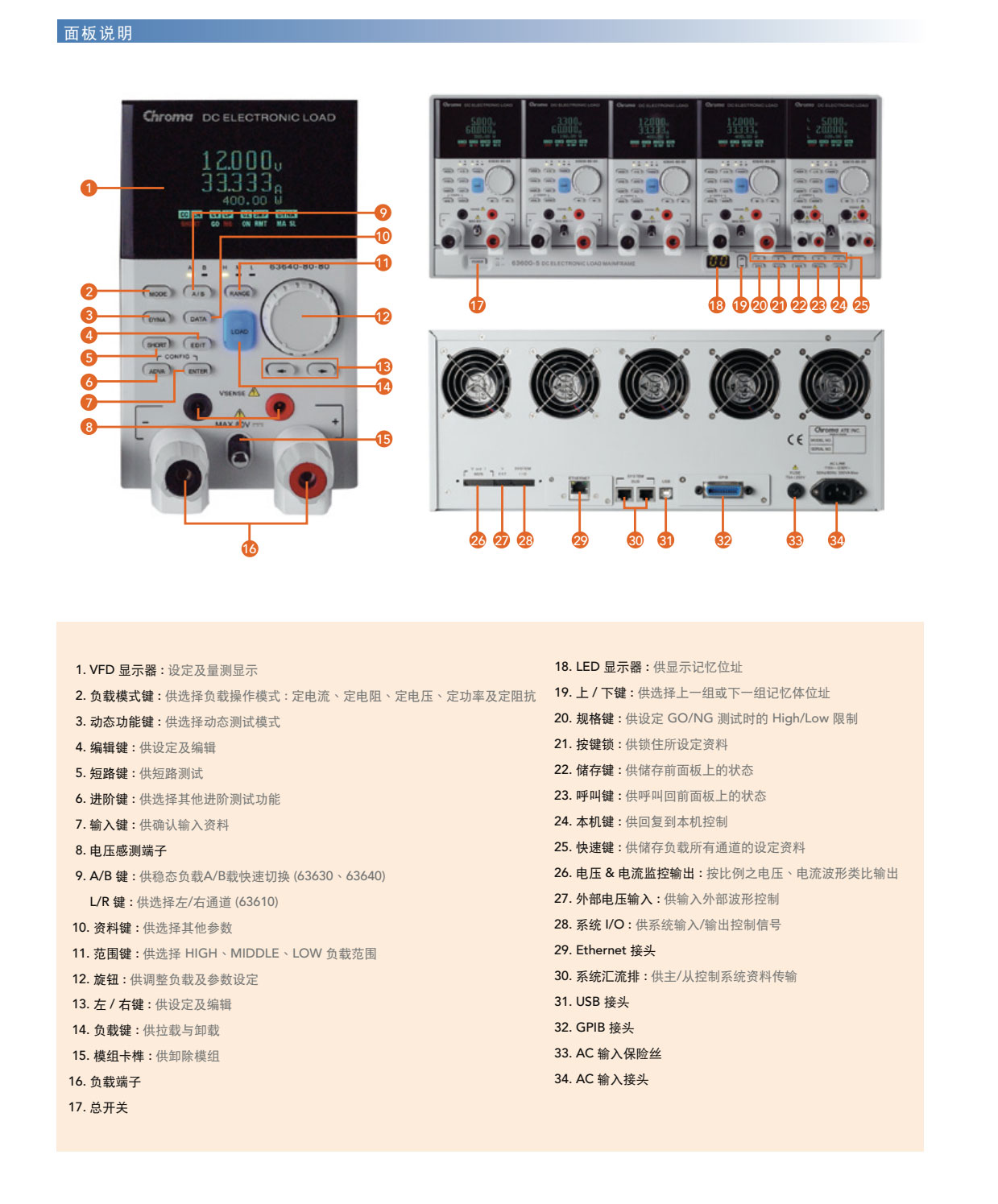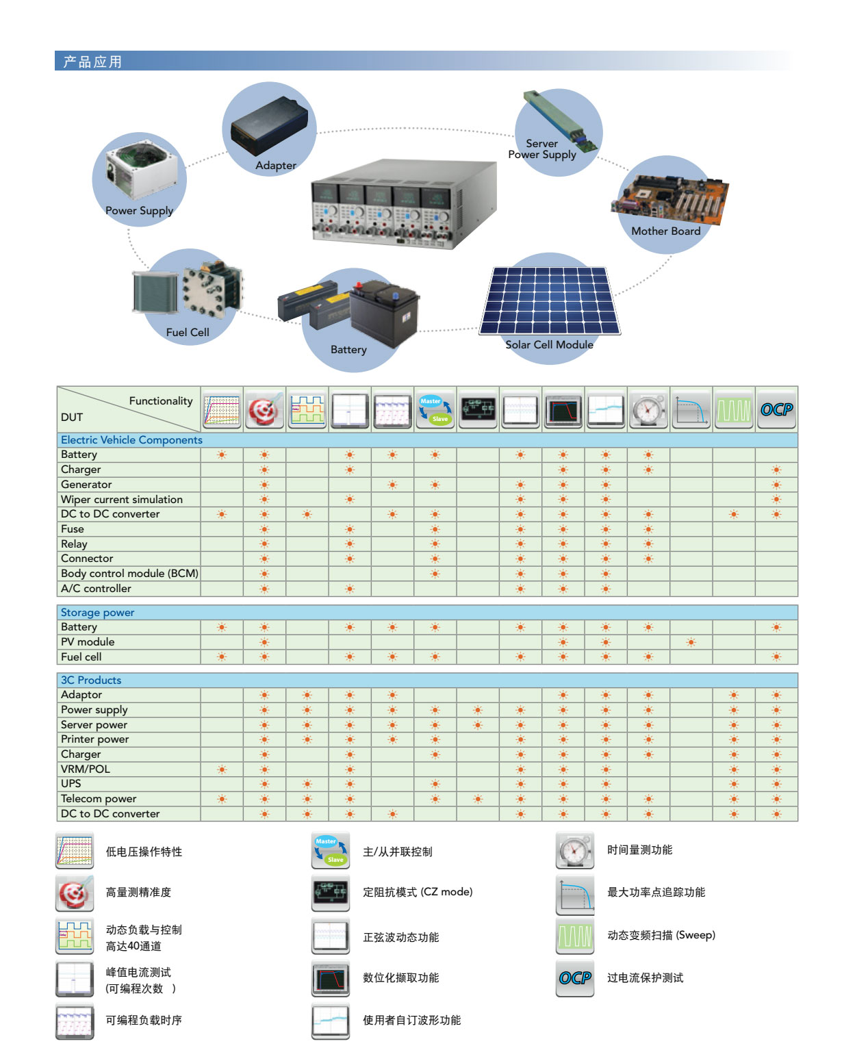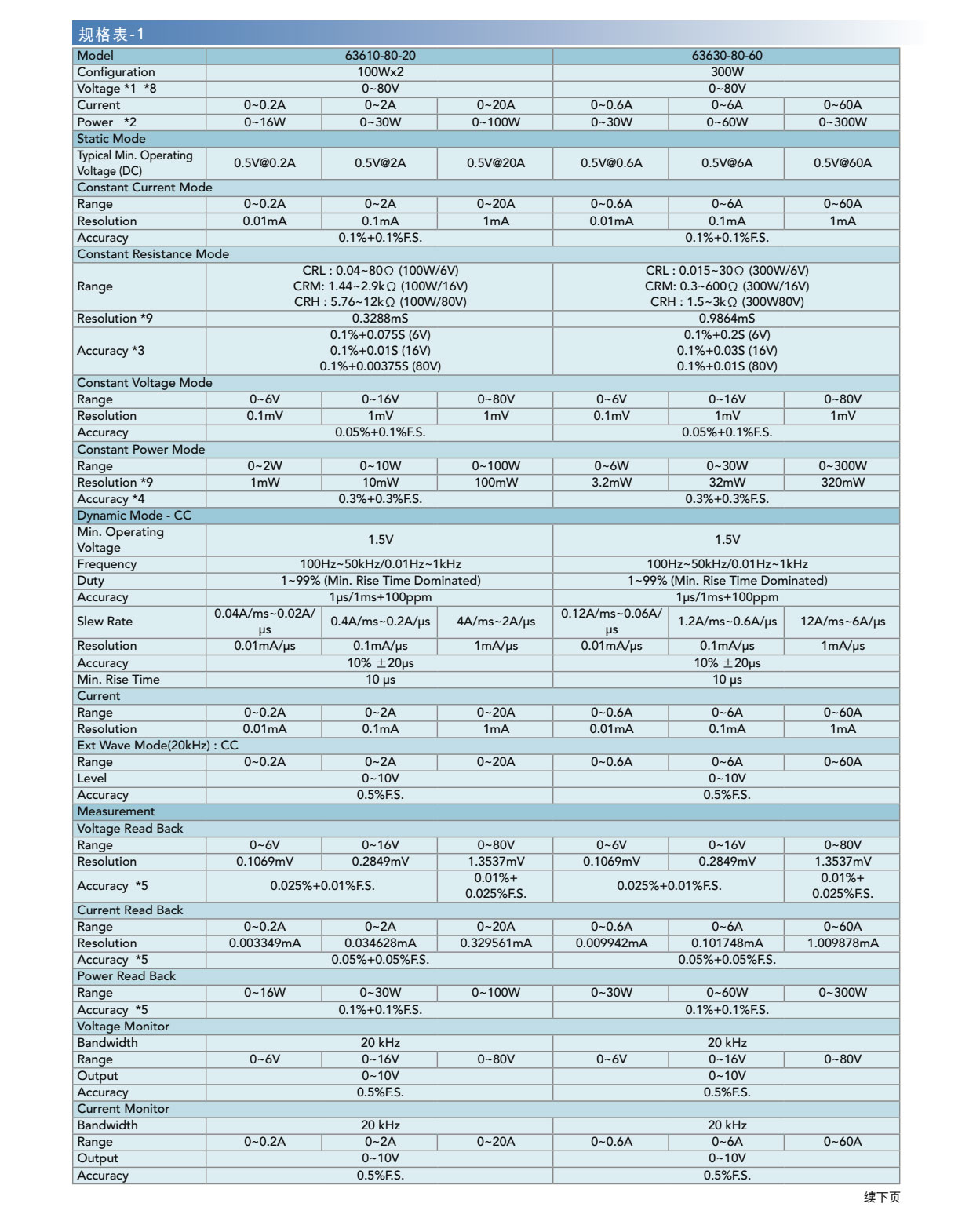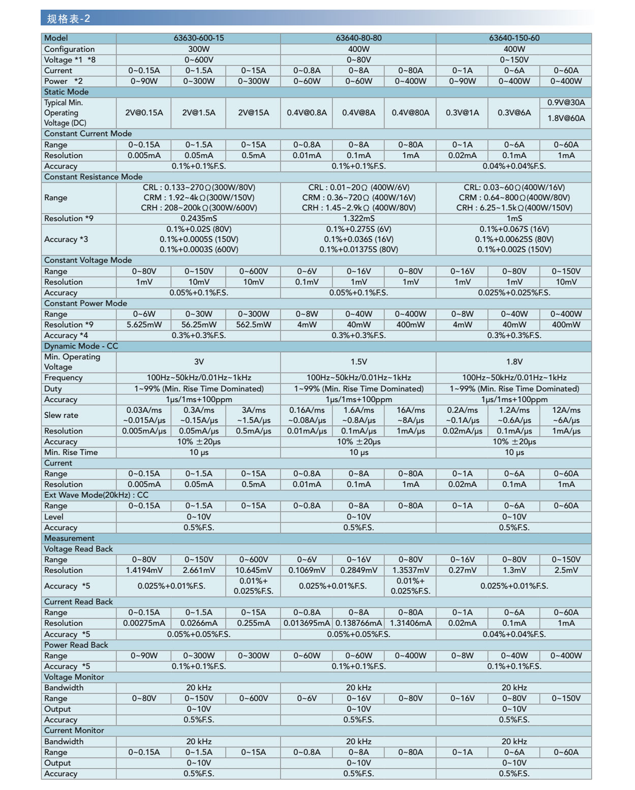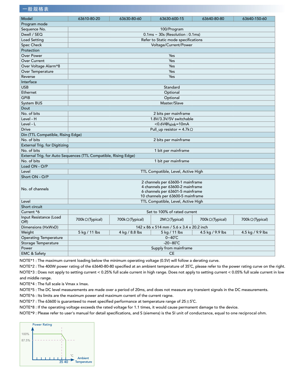 63600系列直流电子负载,主要是供A/D电源供应器' D/D转换器、充电器、电池、伺服器电源及一些电力电子元件等产品测试使用,另外,对于研发部门、产品屋产及一些进料检验的应用等,63600都能展现其优异的性能。 63600运用DSP的新技术开发了首创的定阻抗(CZ)操作模式,此模式可模拟非线性负载的实际拉载状况。 63600系列可在低电压(0.4V)下拉载其额定电流。此特性于Point-of-Load的D/D测试及燃料电池的测试上,仍保有其最佳的拉载能力。 63600系列可透过可编程的拉载电流准位 ' 电流爬升率/下降率、持续时间和Von点电压等功能来模拟广泛的动态负载应用。63600也有自动变频动态扫瞄功能(亦即不同频率的负载模拟)以满足ATX电源供应器的需求。再者,亦提供了100组的储存功能,并可随时呼叫使用者所储存的设定值。在自动化的测试上,此储存、呼叫的功能可缩短测试时间。 63600整合了即时精准的电压、电流量测功能,每个模组都具有三个档位、解析度高达16位元。使用者可于线上做即时的电压量测和调整,也可使用前面板上的按键进行短路模拟测试。 透过前面板的VFD显示器及旋钮,即可在63600系列电子负载上做简易的操作与设定,更能透过Ethernet、USB和GPIB等介面进行远端控制。 63600也包含了例行性自我诊断功能及过功率、过电流、过温度的保护与过电压告警,此外还提供了正负极反接的告警,此全方位的保护功能,更能确保63600系列的品质与可靠度。