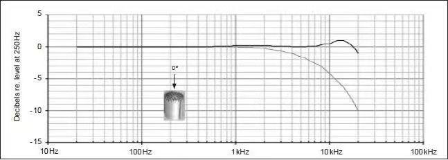 典型的频率响应。上部曲线显示0°的自由场响应,下部曲线显示压力响应。